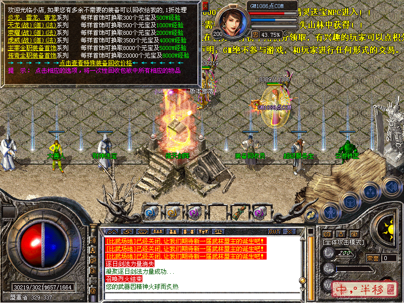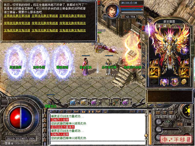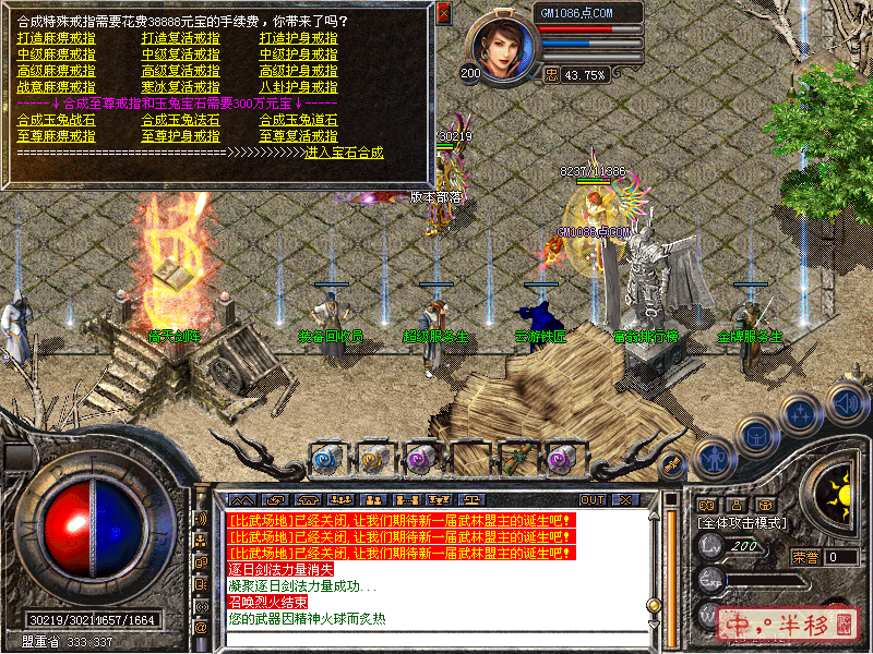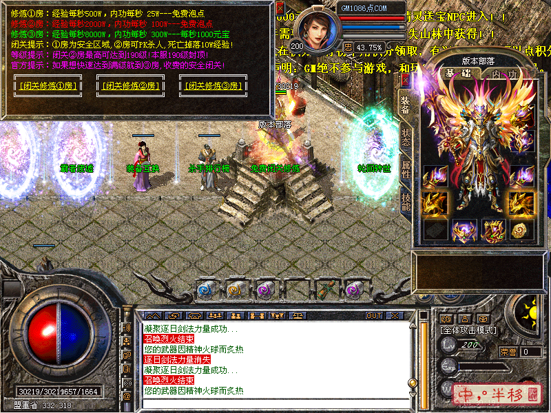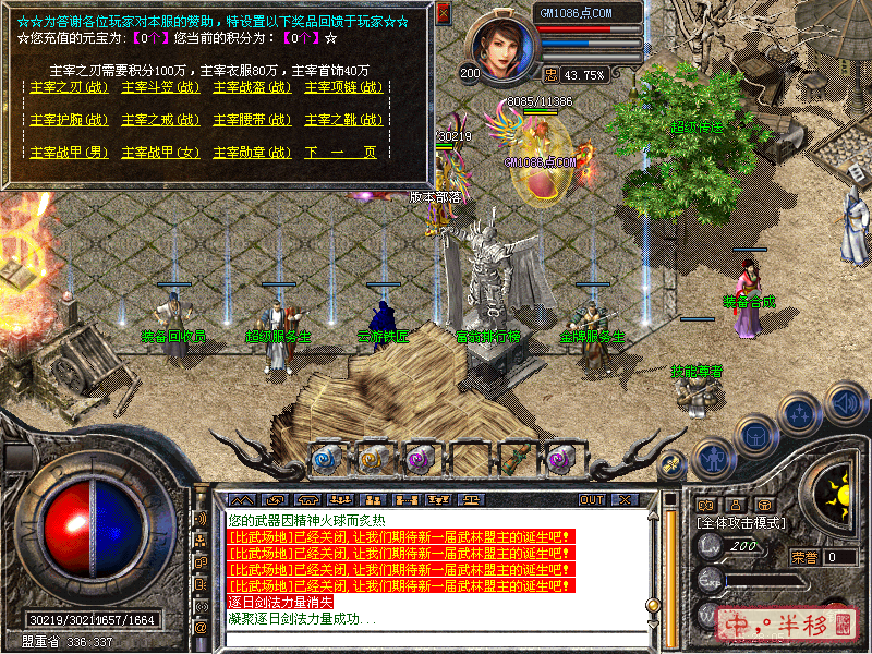积分系统:本服凭积分可以换取主宰以下装备,有兴趣的玩家可以点击积分奖励使者或富翁排行榜查看积分奖励内容。再次声明:GM绝不参与游戏,和玩家进行任何形式的交易。。请各位玩家小心。游戏内有自称是GM的,一定是骗子。