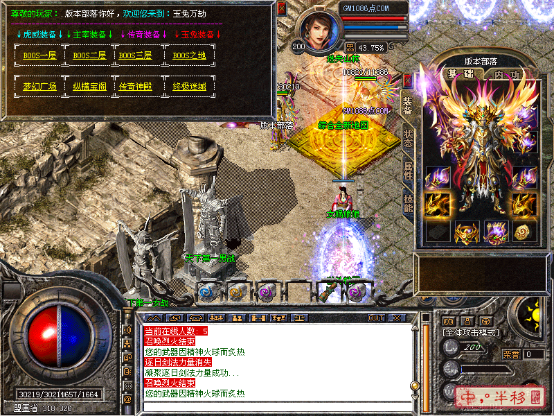 最新更新:新加入传奇套装,穿齐传奇套装可以学会召唤冰眼巨魔技能,传奇套装可以在传奇之城爆出!!