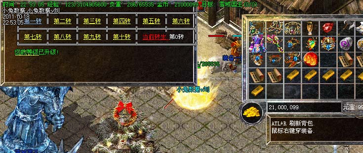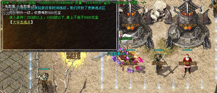 道士180级召唤2只强化白虎圣兽,附带麻痹属性。万人之上の斩以上的武器全部附带毒素属性