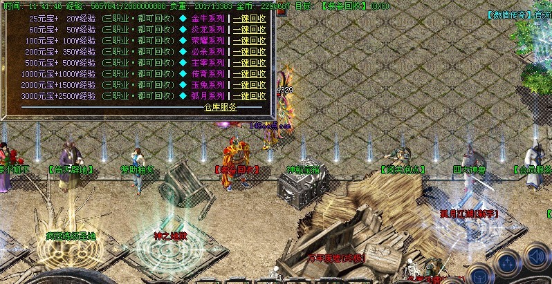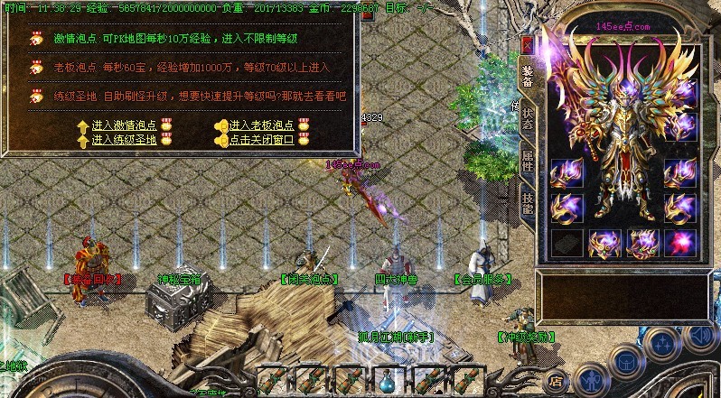 19.非RMB玩家,去[装备狂暴][永恒之塔][传奇庄园]打怪爆装备,可回收大量元宝!可以爆到王者、金牛、炎龙、荣耀、必杀、主宰、传奇装备!新手装备去[装备狂暴][魔龙城]打,练级带3倍经验勋章去[疯狂练级圣地]