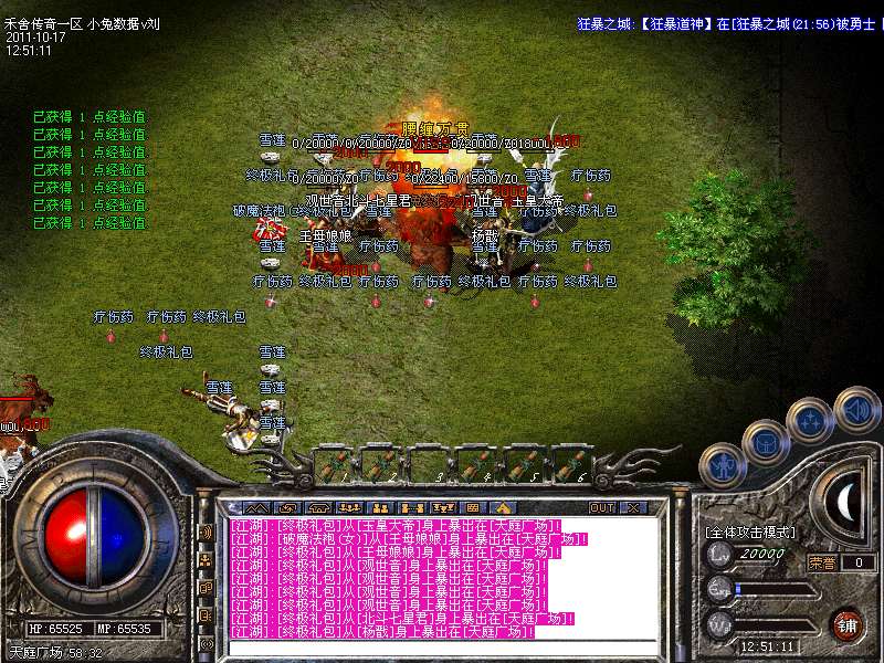 顶级狂暴城:进入顶级城每秒收钱2元宝,每秒得100万经验,边打宝边升级,