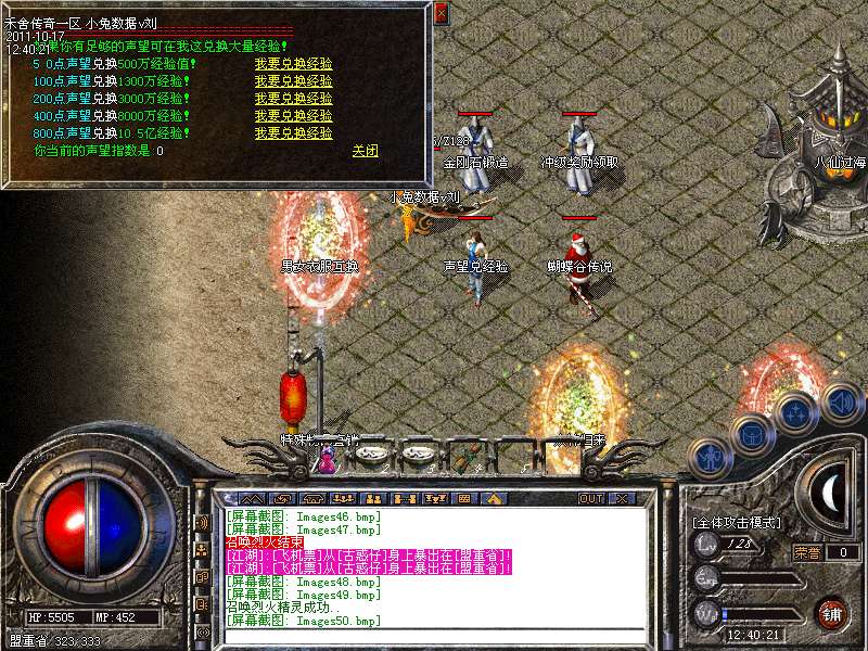 声望兑换:声望可洗红,变性,变职和兑换经验的功能,200点声望兑换3000万经验值,声望可在神仙和蝴蝶谷主身上获得!