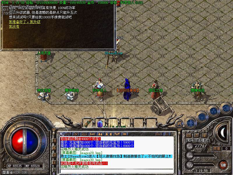 新手玩家请到祖玛打取祖玛装备换取元宝 新增终极之里和魔神绝地和神泣废嘘里面怪爆终极装备。