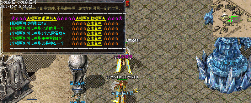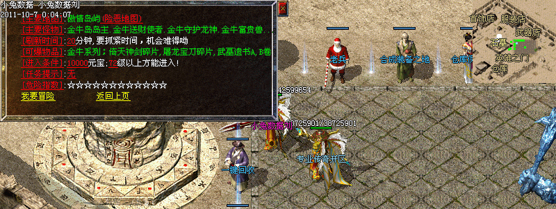 每天16:00整,20:00整,00:00整,三时间段全服活动,必暴武器衣服,活动还可爆出银票,合成终极套装必备之佳品!