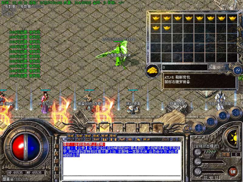 【更新】财富劫阵,BOSS爆出财富神石可以启动财富阵,启动的同时可以随机获得元宝!!满188层土药将会出现大量的元宝!!具体请查看土城财富劫阵NPC!!