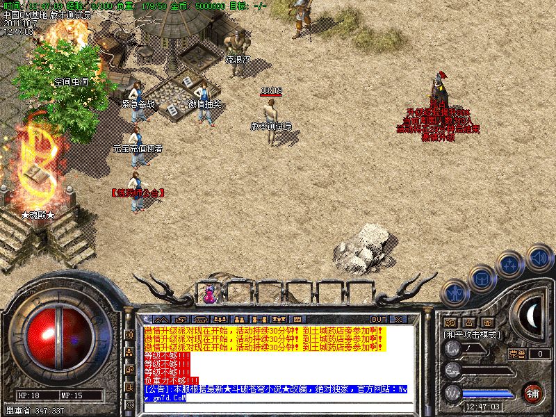 活动:魂殿,殿主(领取600000元宝) 魂殿,护法(领取400000元宝),天尊(领取400000元宝) 守城 战士,法师,道士(领取3000元宝)
