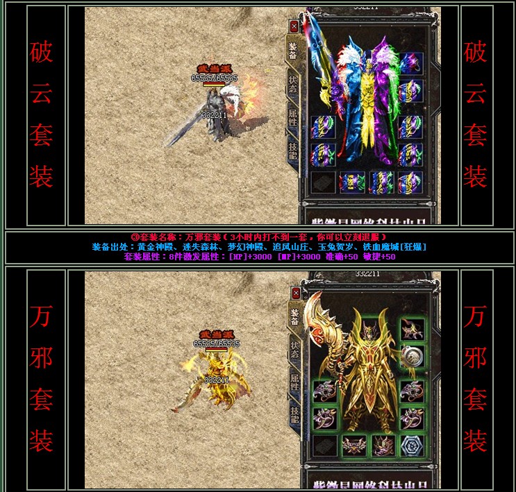 游戏必知:本站封顶180级。顶级套装攻击过1200点。装备爆率非常之高。麻痹护身传送复活轻松获得。为了维护法师的利益,本服绝对不出破护身属性的物品!