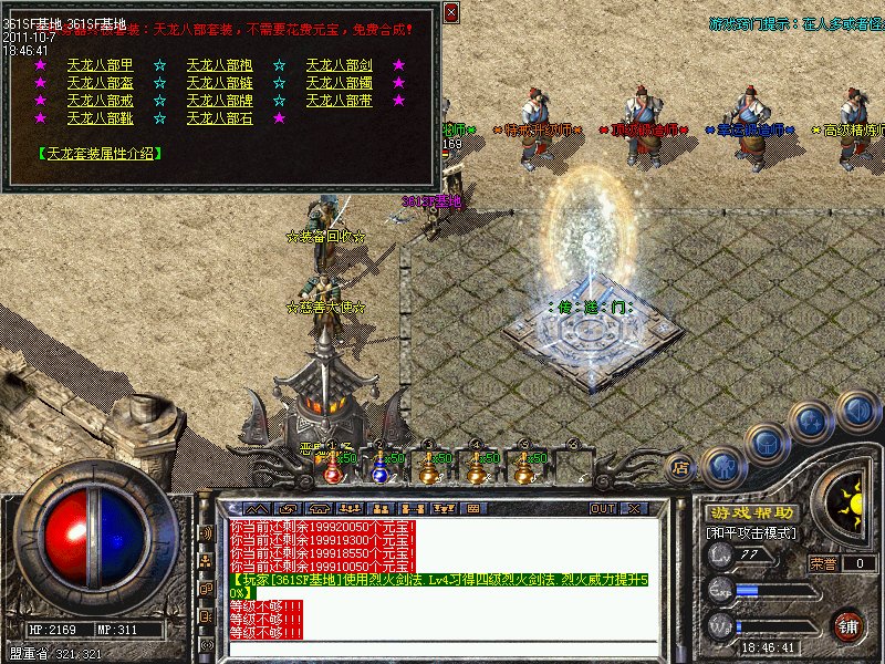 金条出处:在传送门的专爆地图中,所有怪物都会掉落金条,人物上线既送一百万金币零用!