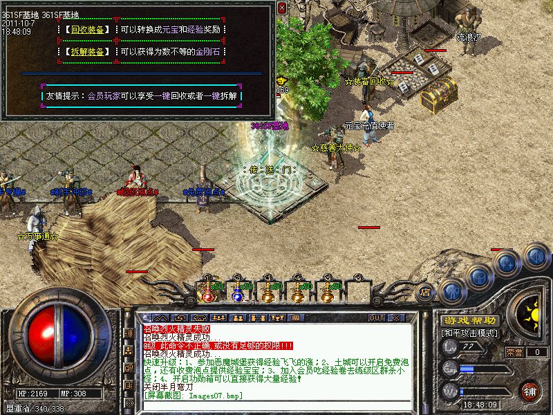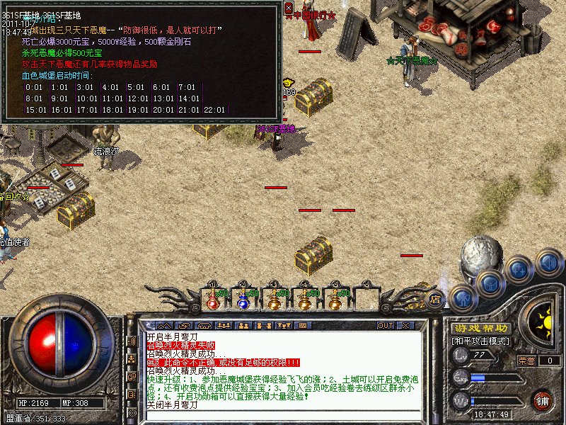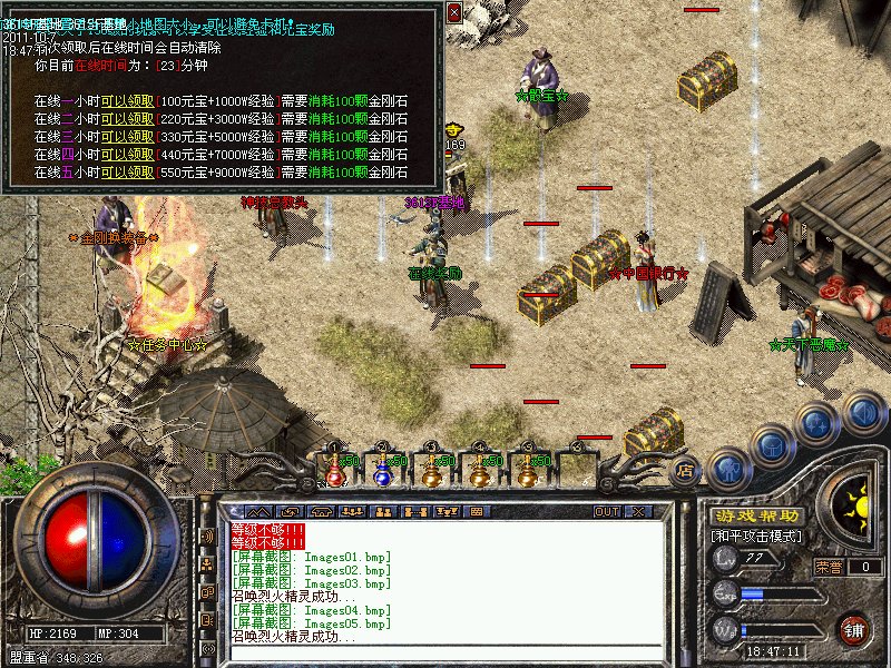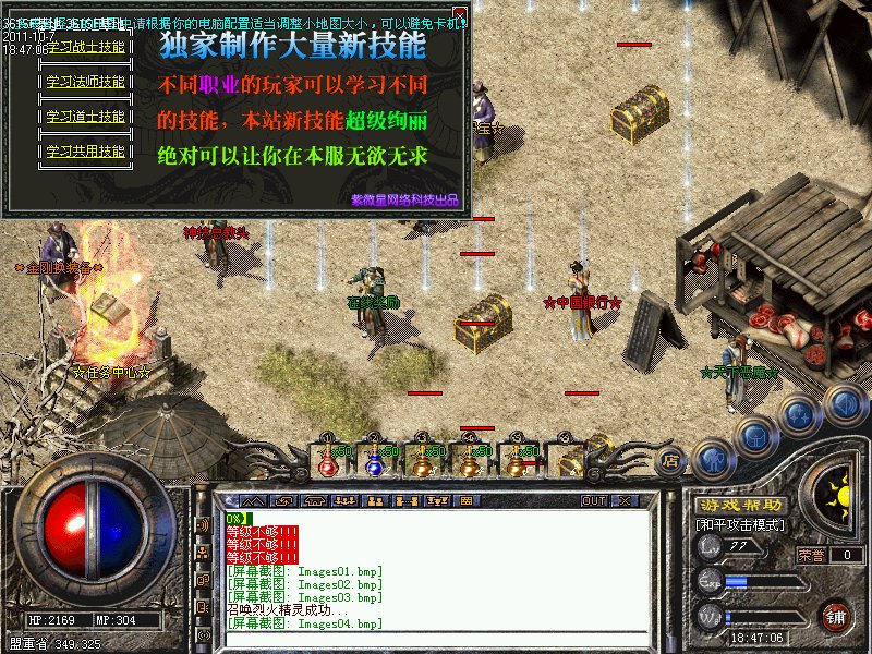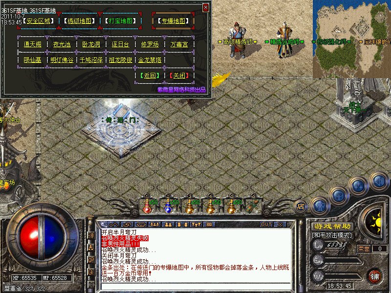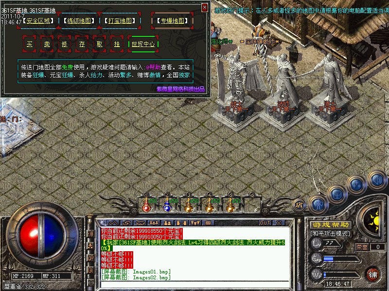 介于传奇城市地图太多,我们只留下土城和比奇两个城市,练级区也缩减成三个,无限刷怪,吃个十倍经验去升级去吧!