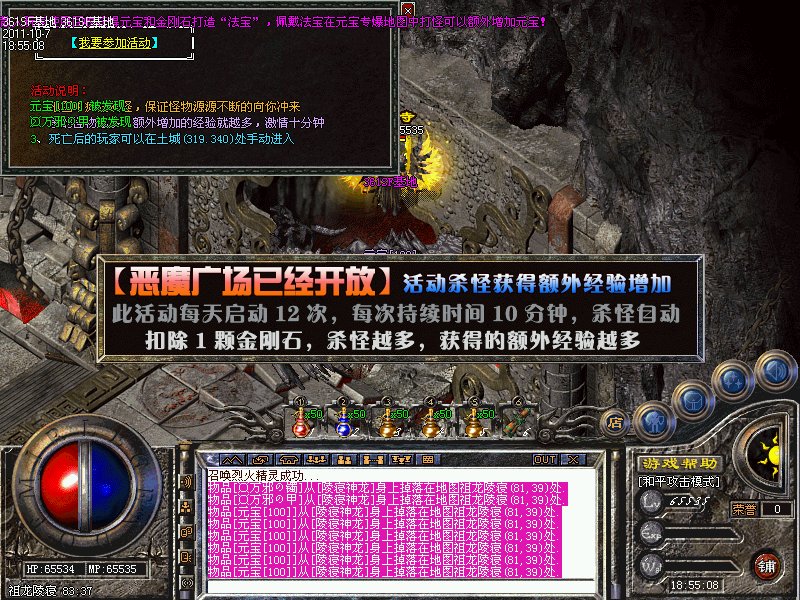 独家法宝系统,使用元宝、金刚石、经验值可以打造出法宝,法宝放在包裹里,然后去元宝专爆地图杀怪就可以随机获得元宝奖励,法宝等级越高获得的元宝也就越多!