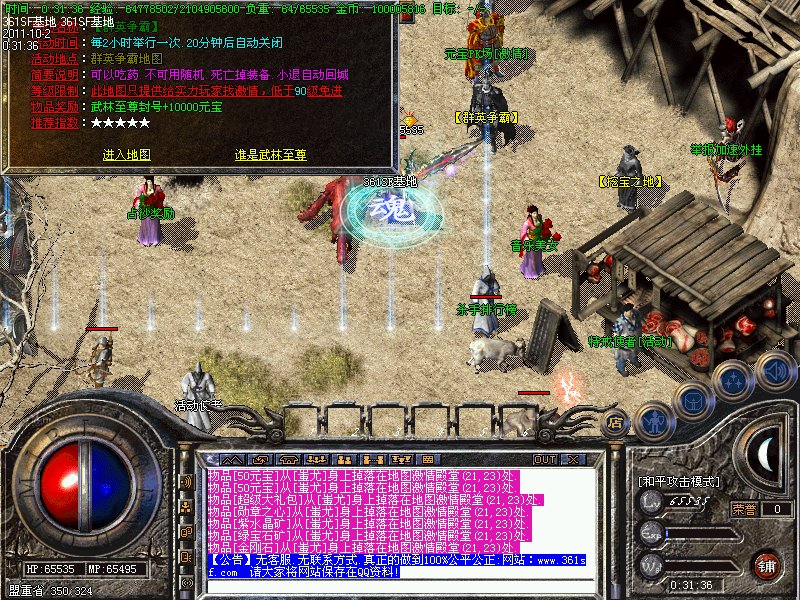 五.【特别地图】:抗日战场,进入等级需要85级,里面怪物刷新快,爆率高,装备好,想获得好装备的。是你的必进之地!【此地图最新添加人形怪,传奇,主宰,必杀,元宝爆率超高】