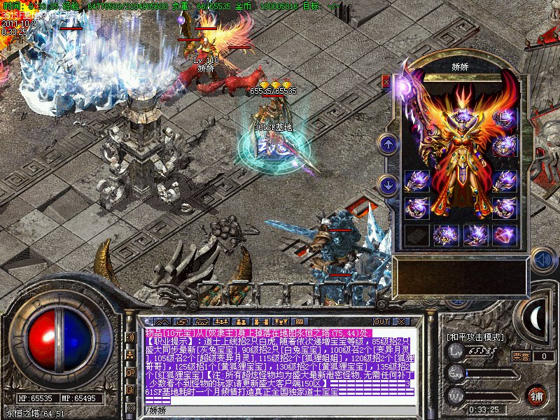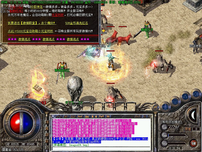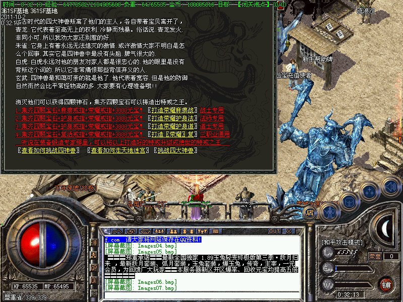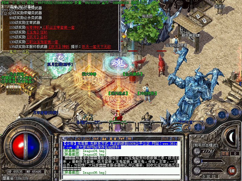 八.【特殊刷新】:用魔法神石在土药旁边的魔法结阵可召唤出蚩尤.同时可获得丰富的奖品.--即本服的所有装备都可送出!