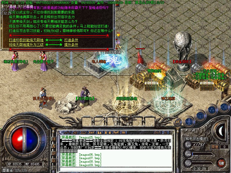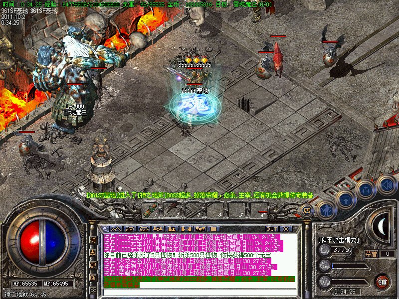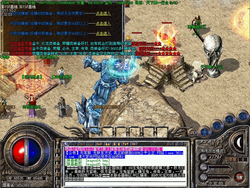二.【地图介绍】:烟花秘穴,盘古地图,玛雅神殿,六道轮回,魔龙血域,六道轮回,神之地狱,雪域冰宫,散人天堂,永恒之塔,传奇庄园,地下城,万年废墟,,兽族部落,弧月山庄等所有地图均有不同BOOS刷出!